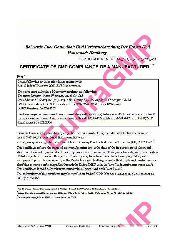 의약품 제조 및 품질관리기준 적합판정서